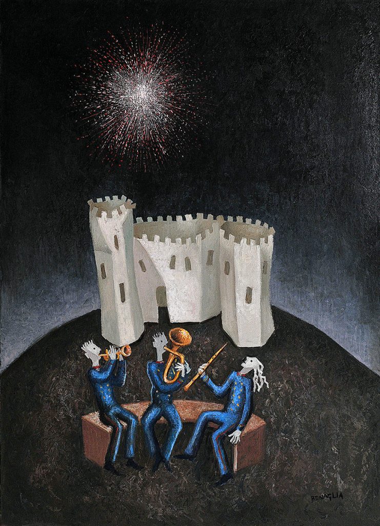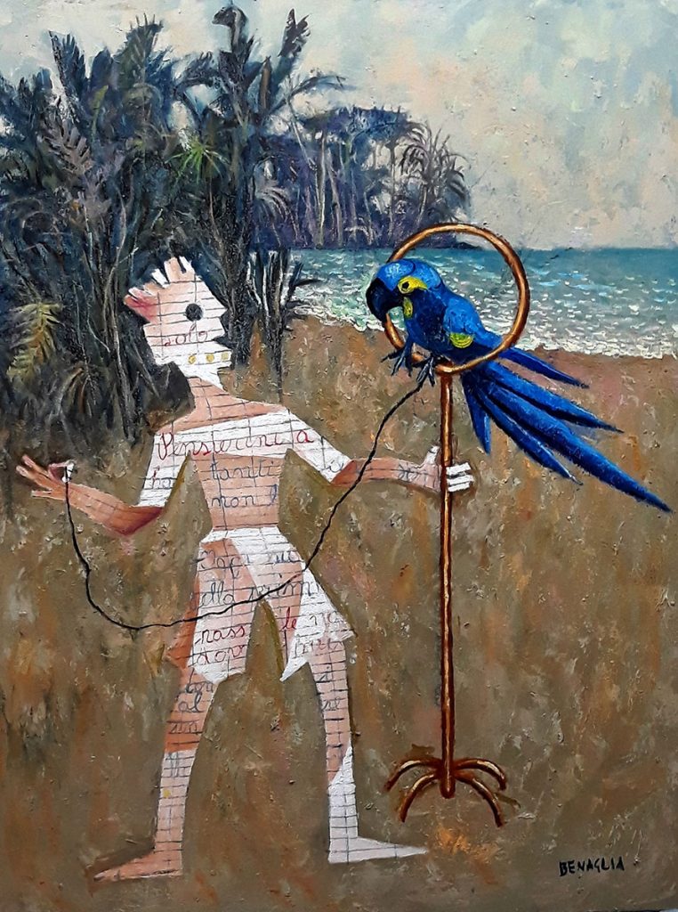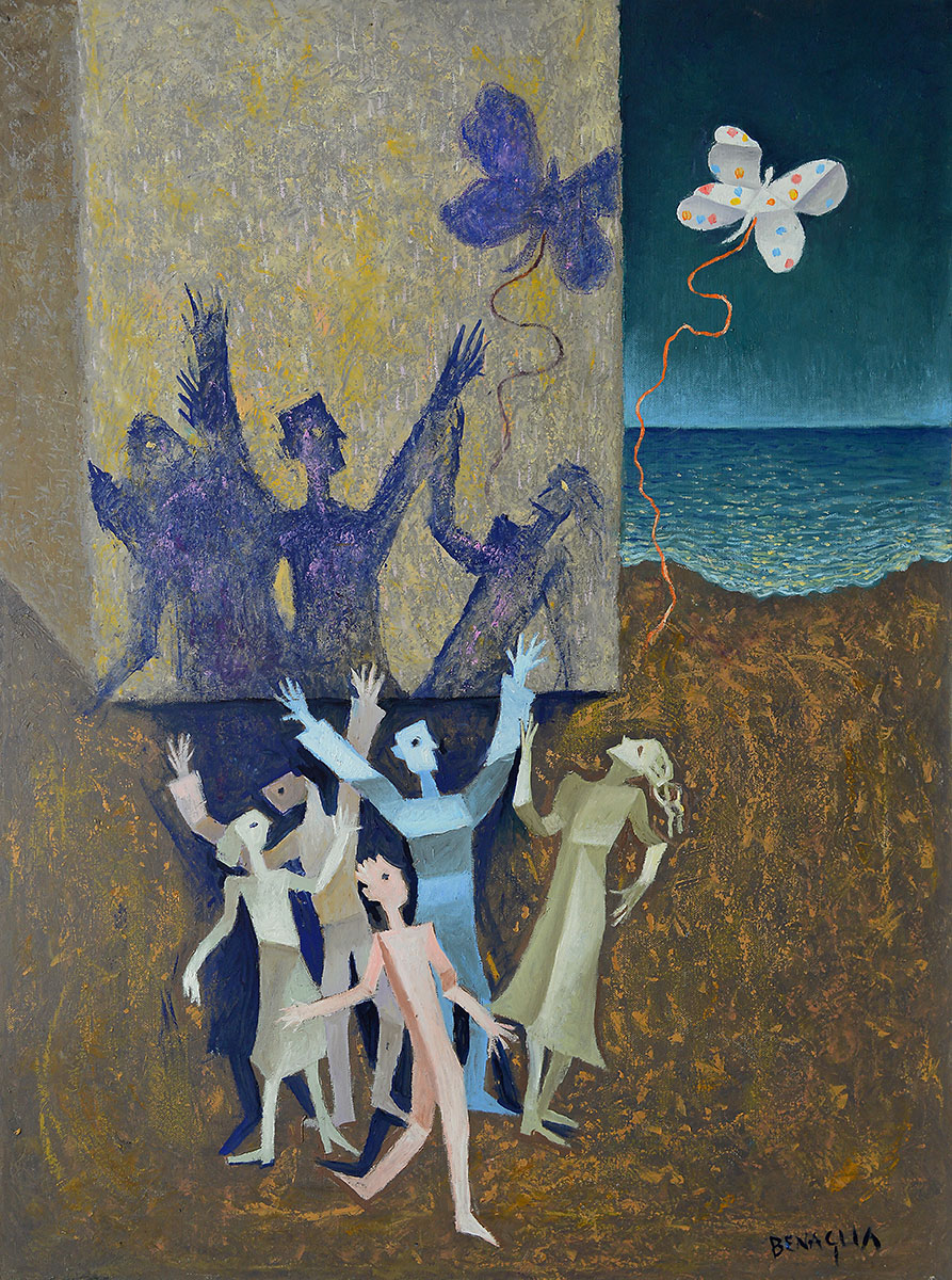 Pittore, disegnatore, incisore, litografo, scenografo, scultore, Enrico Benaglia è nato nel 1938 a Roma, dove vive e lavora. Ancora adolescente frequenta, per motivi professionali, Villa Medici, L’Accademia di Francia a Roma e gli studi di alcuni protagonisti dell’arte del Novecento: Fazzini, Omiccioli, Gentilini e Montanarini. Intorno alla fine degli anni Sessanta, incoraggiato dalla stima e dall’amicizia di pittori e critici d’arte come Vittorio Guzzi, Domenico Purificato e Giovanni Stradone, Benaglia espone, alla Galleria La Vetrata di Roma (1969), una serie di quadri dove già si stabilisce l’originalità della sua ricerca estetica e poetica; è proprio Roberto Lombardi, titolare della Galleria d’arte, che per primo intuisce le potenzialità culturali del pittore romano.
