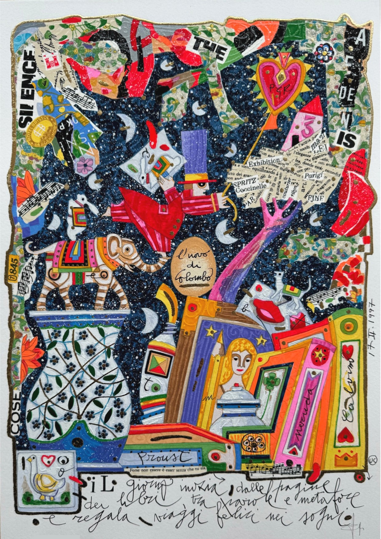 Serigrafia polimaterica con interventi in glitter