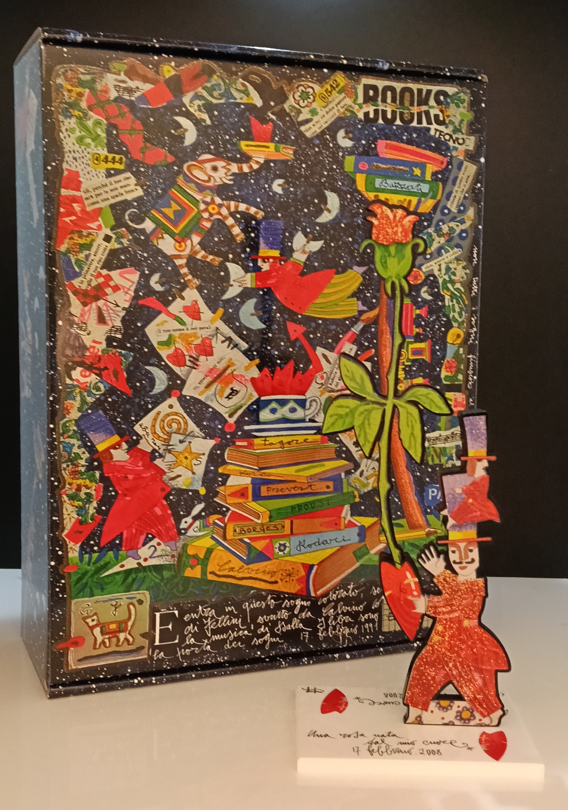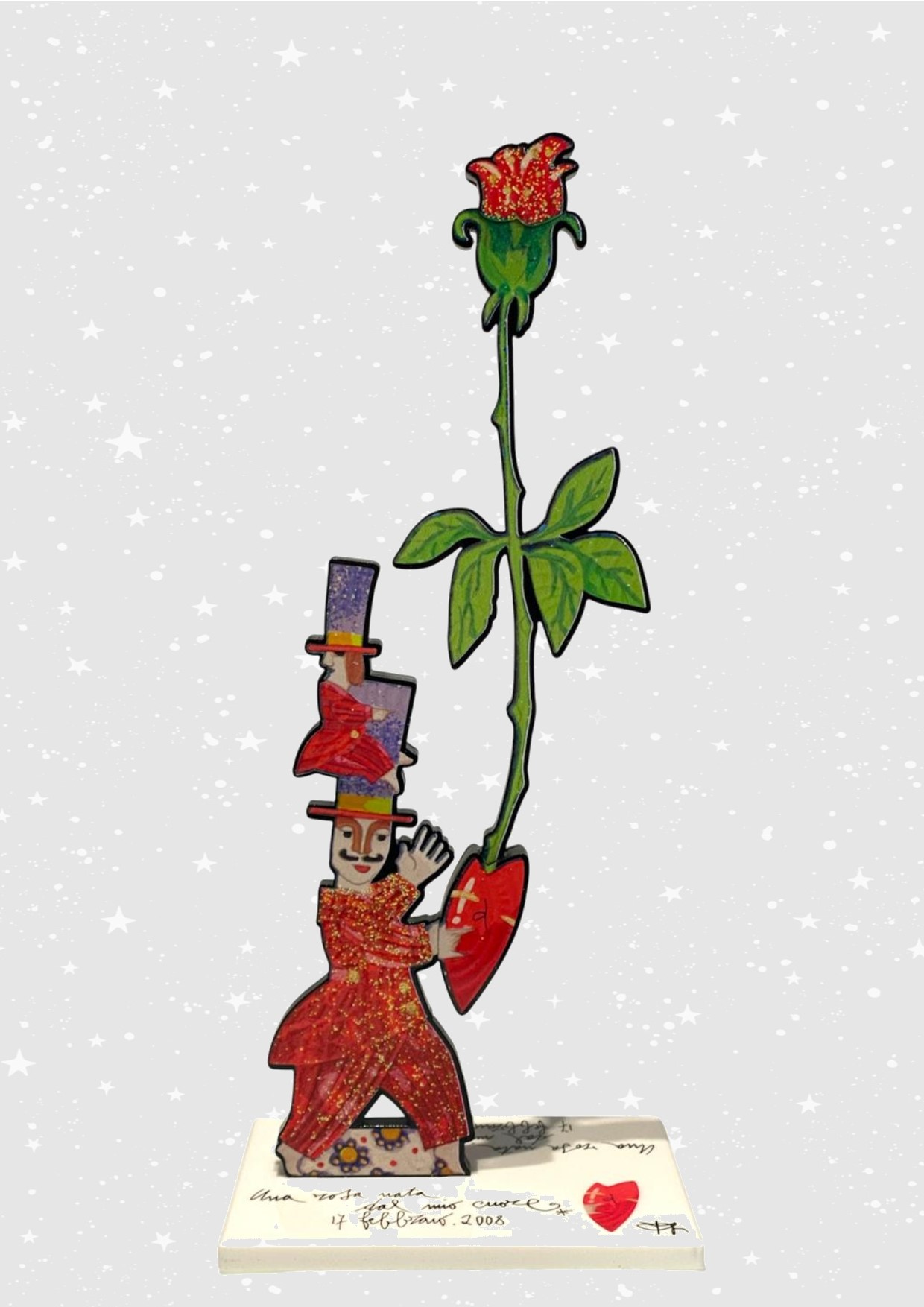 Scultura in resina colorata e inserti a rilievo con applicazione manuale