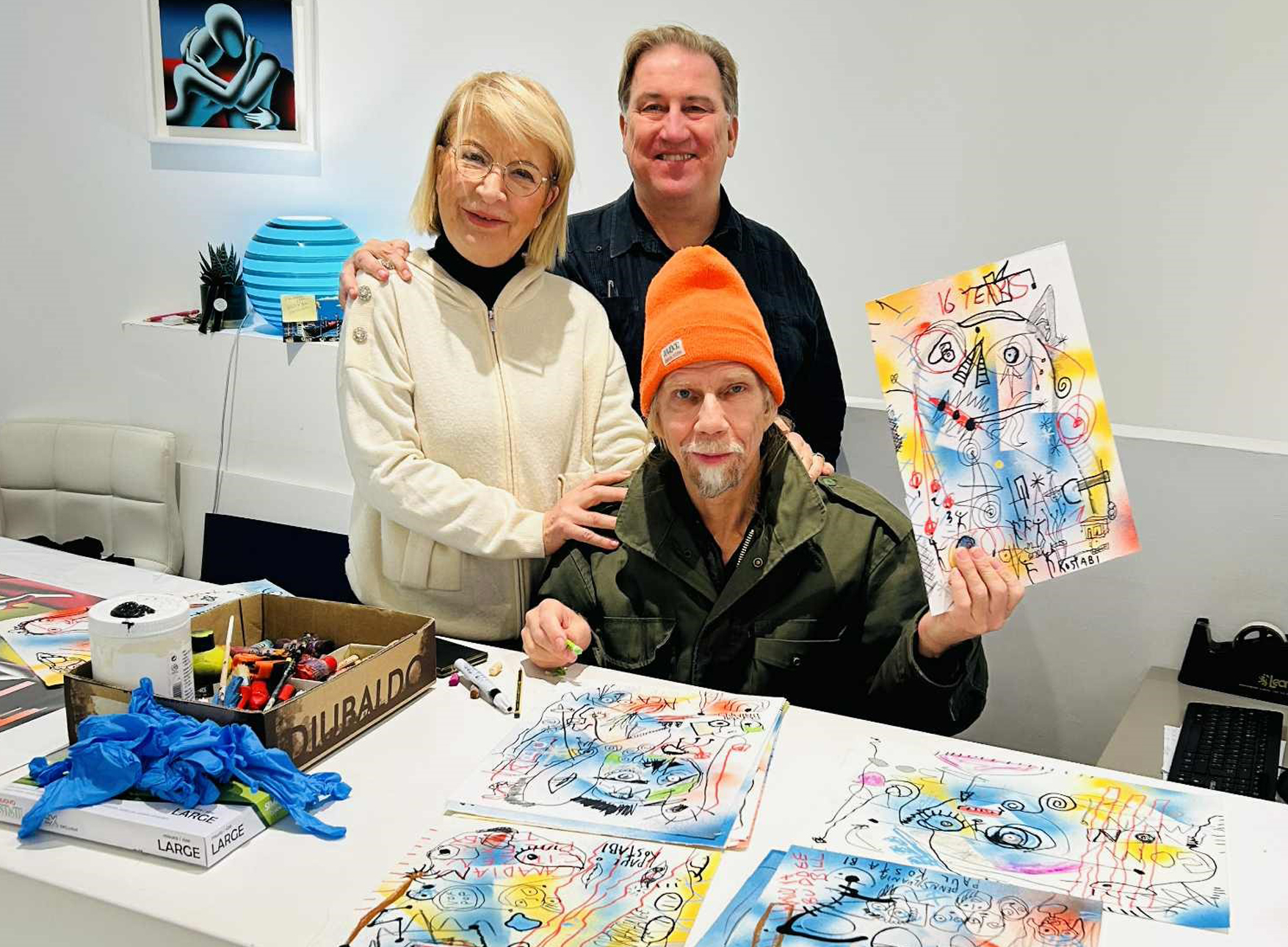 Giuseppina Conti con gli artisti Mark e Paul Kostabi